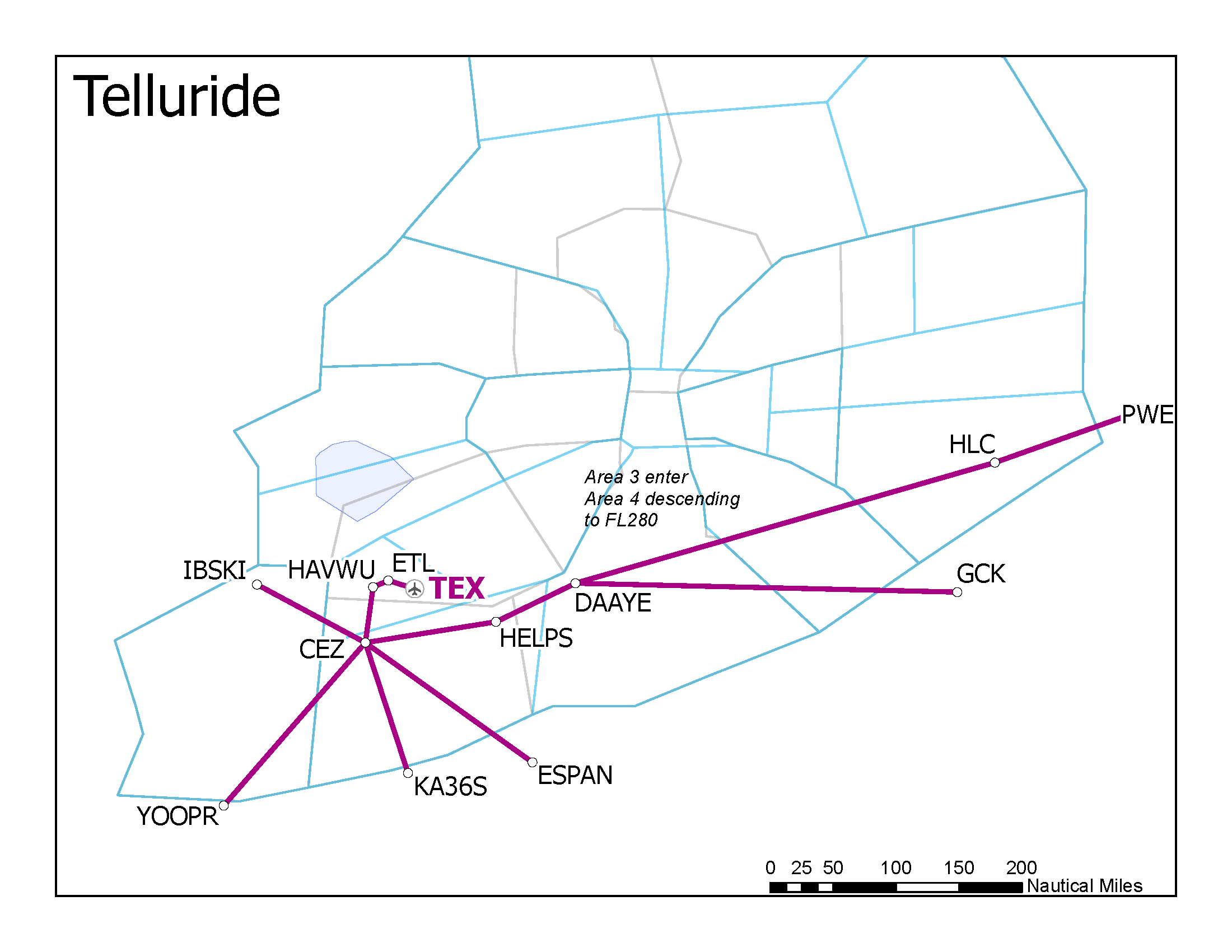 IFR flights operating into KTEX should file one of the following preferred routes between the hours of 1500-0100 UTC (0800-1800 MST) daily: