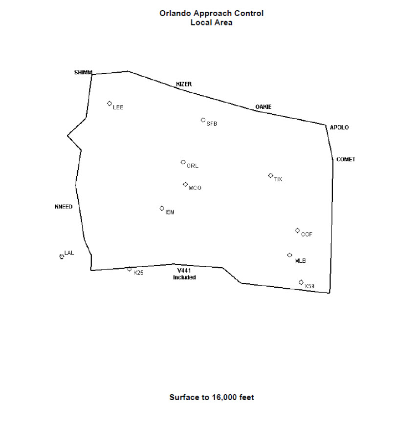 The following procedures have been implemented to convey practice approach requests in an abbreviated format when filing an IFR flight plan. This has proven to aid in the efficiency of the operation along with reducing frequency congestion. This procedure is only valid for aircraft operating within Orlando Approach Control Airspace, as shown on the following airspace figure. Pilots may indicate the abbreviated practice approach and holding requests in the order you would like to fly them within the remarks when filing IFR Flight Plans.